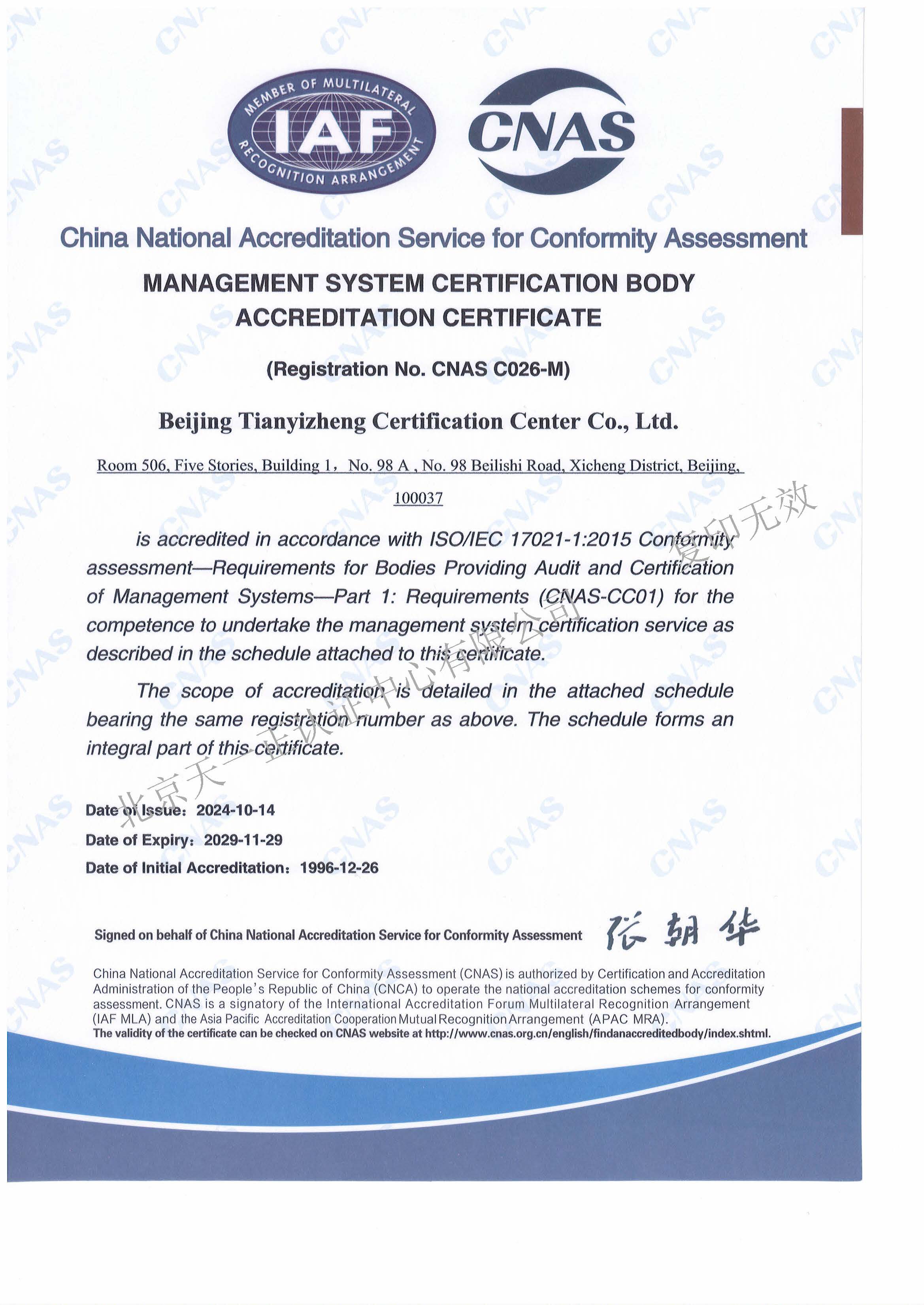 認(rèn)可證書